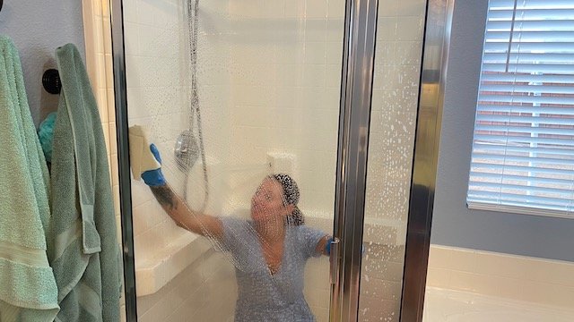 cleaner srub the shower door